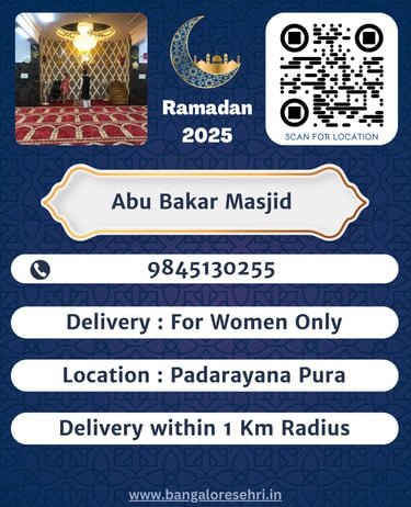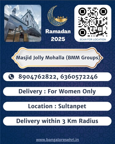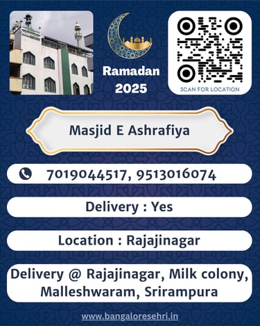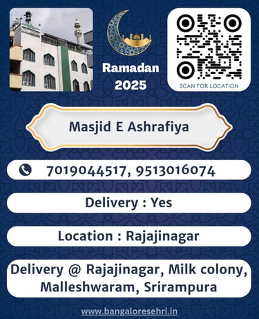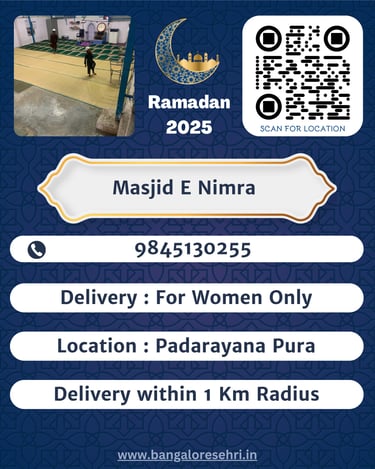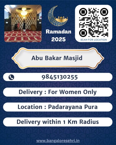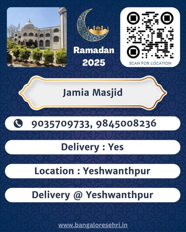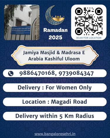 Address / Area - Jamia Masjid, Opp RTO, Dr. Ambedkar Nagar, Yeshwanthpur, Bengaluru - 560 022