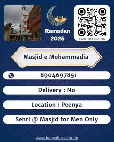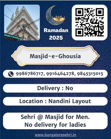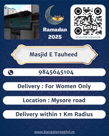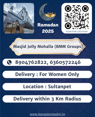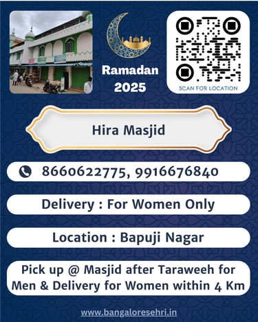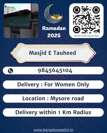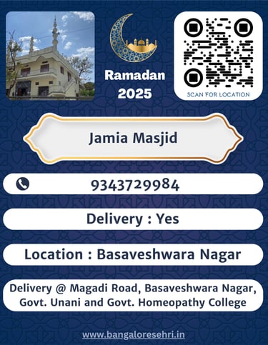 Address / Area - Jamia Masjid Basaveswarnagar, 79, 17th Cross Road, KBH Colony Basavewarnagar, Bengaluru - 560 079