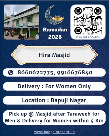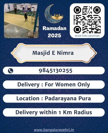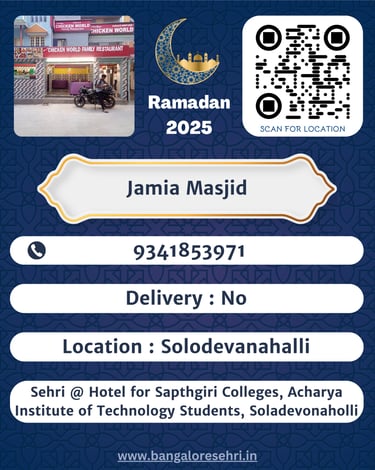 Address / Area - Jamia Masjid Soladevanahalli, Maruthi main road, Bengaluru - 560090